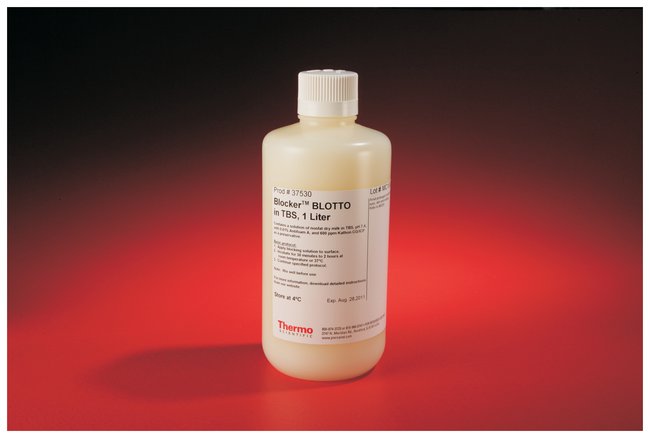 Block membranes, plates and other samples with this ready-to-use 5% solution of nonfat powdered milk in TBS for Western blot, ELISA and other detection methods.