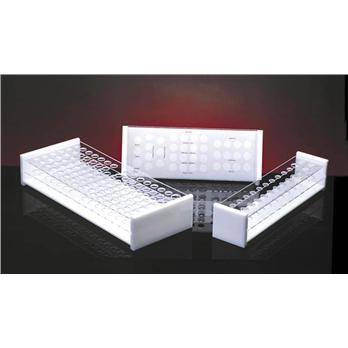 These racks are manufactured of clear acrylic shelves with white bases and sides. For typing, screening and other blood bank applications. For blood donor processing. Holds donor sample tubes as well as tubes for donor’s serum and cell suspension, ABO, Rh, antibody grouping and screening.