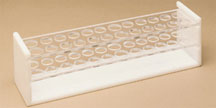 Clear acrylic shelves with white bases and sidesHolds donor sample tubes as well as tubes for donor's serum and cell suspension, ABO, Rh, antibody grouping, and screeningAvailable in four sizes24-tube capacity: Holds four 16mm O.D. sample tubes and twenty 10mm O.D. crossmatch tubes29-tube capacity: Holds one 16mm sample tube, one 13mm pilot tube serum, and twenty-seven 10mm phenotype, genotype, and cross-match tubes38-tube capacity: Holds thirty-eight tubes for five sets of tubes with printed identification on top panelSet 1: One 16mm patient, one serum tube, and one cell suspension tubeSet 2: Four 10mm-14mm forwarding group drivesSet 3: Three reverse grouping tubesSet 4: Sixteen major cross match tubesSet 5: Twelve minor cross match tubes90-tube capacity: Holds six 16mm O.D. donor sample tubes, eighty-four 10 to 13mm tubes for donor's serum and cell suspension, ABO, Rh, antibody grouping, and screening