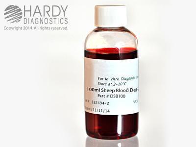 Blood, Sheep, Defibrinated, 100ml^ Our animal blood is obtained from a controlled herd that is kept free of antimicrobic drugs and disease. All animals are maintained in a healthy condition and treated humanely in accordance with government regulations.