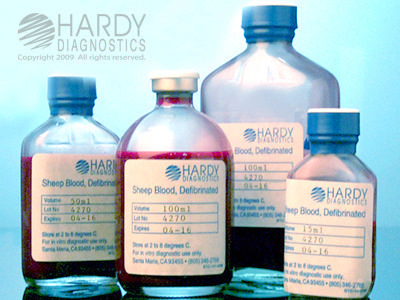 Blood^ Blood sheep, defibrinated, screw cap, glass bottle, ntibiotic-free and is less prone to spontaneous hemolysis. 200ml.