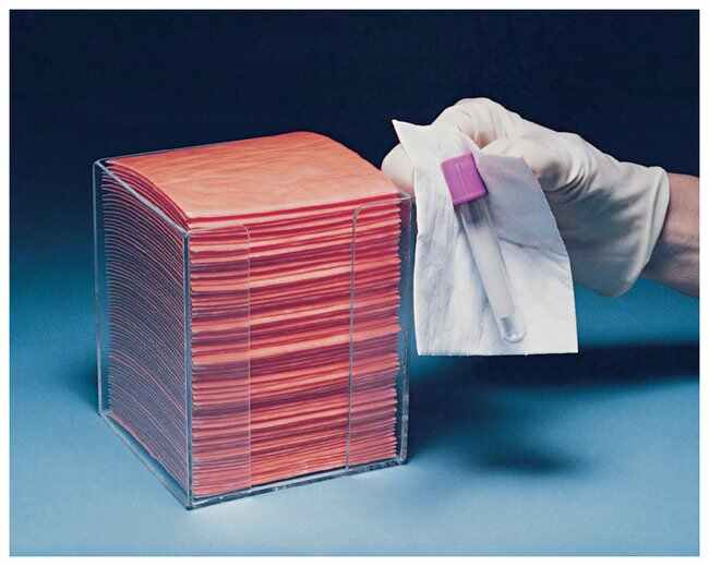 Wipes and Liners are non-sterile and not intended for use on patients.Soft, white absorbent wipe with bright-orange polyethylene backing is impermeable to blood, body fluids and strong solvents including xylene, xylene substitutes, acetones, ketones, alcohols and formalinNonwoven cellulose captures and retains fluid; nonlinting for use with delicate instrumentation such as blood countersOrange flexible impermeable plastic backing prevents soak-through of pathogens and chemicals to gloves which help minimize cross-contamination when lab personal open doors or touch surfacesCan also be used as mats and liners; rolls can be cut to desired lengthOne time use only