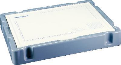 Blue Board Base^ Used to elevate the Dissecting board to an appropriate height. Non skid, light. The base will contain excess fluids and is stackable to satisfy various heigth requirements.