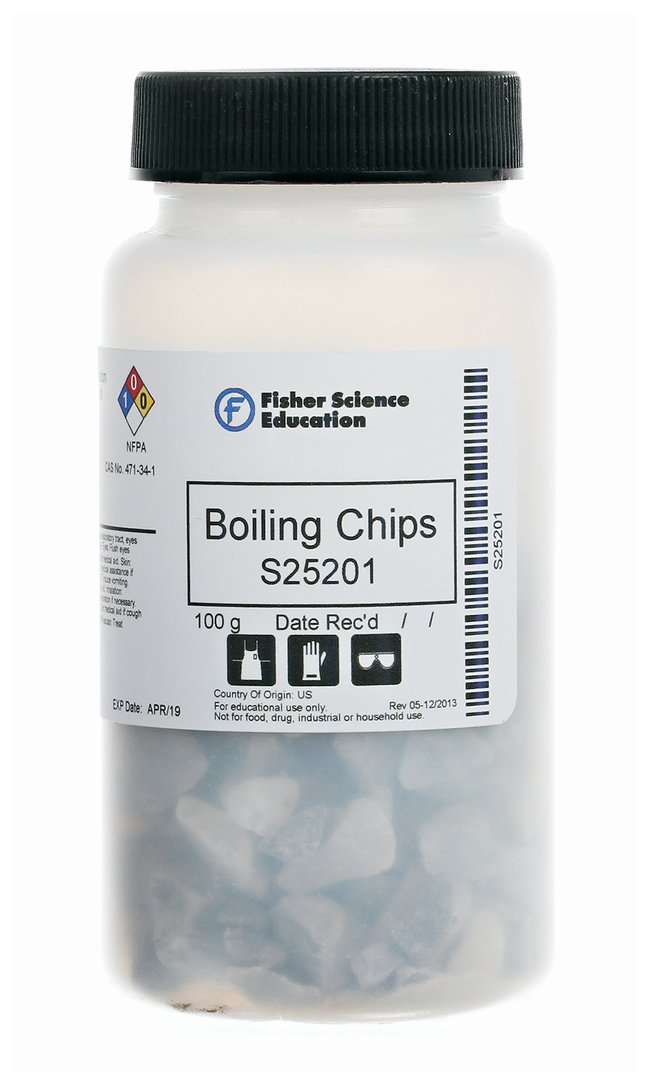 These inert non-volatile granules resist most chemical action except those of concentrated sulfuric acids and strong alkalies. And, they won't contaminate distillate.This product is an Educational Grade Chemical — no C of A is available.