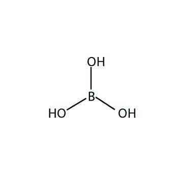 Specifications A commonly used molecular biology reagent and also used in electrophoresis buffers.pKa (@ 20°C): 9.24Molecular Biology Grade (also available in Proteomics Grade)Chloride: <.001%Phosphate: <0.001%Sulfate: <0.01�lcium: <0.005%Heavy metals (as Pb): <0.001%Iron: <0.001%Appearance: SolidBoiling Point: 300°CDensity: 1.44 g/cm3Melting Point: 168.9°C (dec.)RTECS Number: ED4550000Pkg. Format/Yield50 lbMolecular Weight61.83 g/molMolecular FormulaBH3O3CAS10043-35-3Purity>99.5%HazardIrritantStorageRTSolubilitySoluble in glycerol, ether, alcohol, methanol, liquid ammonia, acetone (slightly), water (6.35 g/100 cc) at 30 °C, water (27.6 g/100 cc) at 100 °C, water (50 g/l) at 21 °C, and water (1 g / 18 ml cold water).Brand NamebioPLUSSize500 g