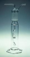 PYREX brand, Gas Washing, Tall Form, Fritted Disc, [standard taper] Stopper, Fritted Ware^ Complete. 250 mL. 51 x 305 mm. Porosity:C. Stopper No.40/50. For additional information on fritted ware, see PP T.23-T.24 of Technical Section. These bottles have a large hexagonal base for stability.