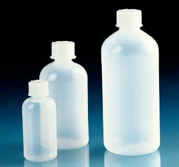 Laboratory Bottle^ Capacity: 50mL. Thread finish: GL18. 37dia.x73Hmm. General-use low-density polyethylene narrow mouth bottle comes with polypropylene screw cap. Bottle provides excellent chemical resistance to aliphatic alcohols, aldehydes, alkalis, and acids.