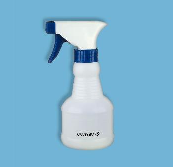 The bottle's adjustable sprayer allows for a range of positioning from fine mist to large stream delivery, accommodating various washing applications. The chemical-resistant and unbreakable bottle is constructed of HDPE, and the sprayer is made from polypropylene. The pump trigger is comfortable for one-handed operation and features an instant-off release that eliminates messy dripping. In its closed position, the sprayer maintains solution purity. The entire wash bottle can be gas or chemically sterilized, making it ideal for hot, cold, aqueous, and solvent-based solutions. Features: • HDPE and polypropylene construction • Chemical resistant and unbreakable • Instant-off release eliminates messy dripping GSA Contract: Yes Capacity: 237 ml (8 oz.) Cat. No.: 23609-182