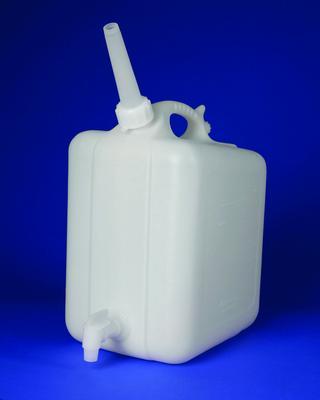 Jerrican, Hdpe, Aspirator, With Spigot, 5Gallon^ Use This Space-Saving, High-Density Polyethylene Jerrican While It'S On The Shelf. A Half Turn Will Open Or Close The Spigot