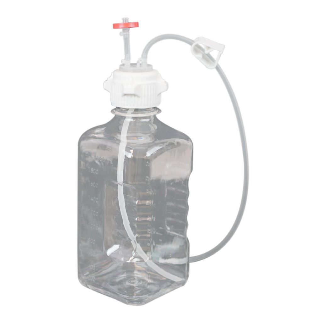 EZBio* Single-Use Media Bottle Assembly 2000mL^ EZBio* Single-Use Media Bottle Assembly, Sterilized, Cap: 53mm VersaCap*, PETG, Vented with DipTube, for fluid transfer and storage, Bottle Material: PETG, Tube Material: TPE, Length: 4.53 in, Width: 4.53 in, Overall Height: 15.3in, Volume: 2000mL