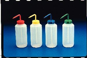 Here is the corrected text: These bottles save time, help avoid mistakes, and increase safety. Color-coded, wide mouth bottles are ideal for quickly identifying the many special solutions and reagents needed in your lab. Bottles are durable, chemical-resistant, squeezable, and easy to clean. One-piece colored cap and nozzle are polypropylene, while the delivery tube is polyethylene. The leakproof wash cap assembly will deliver a single drop or a needle-thin stream with finger-tip squeeze control of flow. For a coarser flow, simply cut the nozzle tip back. • Color-coded caps provide quick, safe identification • Wide-mouthed design • One-piece cap and nozzle plus delivery tube • Single drop or needle-thin stream Available capacities: * 125 ml (4.2 oz.) - Cat. No.: 16650-082, Cap color: Red; Cat. No.: 16650-107, Cap color: Blue; Cat. No.: 16650-093, Cap color: Yellow * 250 ml (8.5 oz.) - Cat. No.: 16650-173, Cap color: Yellow; Cat. No.: 16650-184, Cap color: Blue; Cat. No.: 16650-195, Cap color: Green * 500 ml (16.9 oz.) - Cat. No.: 16650-242, Cap color: Red; Cat. No.: 16650-264, Cap color: Blue * 1 L (33.8 oz.) - Cat. No.: 16650-322, Cap color: Red; Cat. No.: 16650-333, Cap color: Yellow; Cat. No.: 16650-344, Cap color: Blue; Cat. No.: 16650-355, Cap color: Green Cap sizes available: 38 mm and 53 mm.