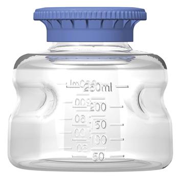 Additional Info Foxx Life Sciences’ Autofil™ disposable laboratory storage bottles have been designed specifically for Life Science researchers to store common laboratory solutions such as tissue culture media, serum, and buffers. The polycarbonate bottles are highly transparent, shatterproof, and have good alcohol resistance. They are available radiation sterilized and rated to withstand three autoclave cycles.Each Autofil™ bottle has features that improve the handling of the bottle, especially when the bottle is wet. The bottle itself has a sloped design that improves stability when placed on the work surface. The narrow bottle shoulder, combined with the molded finger grips, improves the ability to securely grip the bottle with gloved hands. The patented SECUREgrasp™ bottle cap enables easy handling and carrying of the bottle. This innovative cap also allows for easy uncapping, tightening and bottle stacking, and provides a large surface for bottle labeling.Flat Writing SurfaceSECUREgrasp™ Bottle CapAdditional Head Space to Allow 15% DilutionsAutofil™ Bottle HoldsCrystal Clear BottleHigh Visibility GraduationsAutofil™ Stable BaseWarnings and Guidelines:Withstand up to three autoclave cyclesStable to 135° CAppropriate for weak acid, weak base and dilute alcoholDisposableSterilized by gamma irradiationMedia Bottle