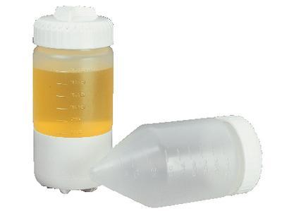 Conical Bottom Centrifuge Bottle^ Wide-mouth polypropylene copolymer bottle with molded graduations. Leakproof and autoclavable. Volume: 175mL. Diameter: 6.15cm. Length, with cap: 14.3cm. Maximum RCF: 27,500g. Complete with polypropylene screw cap and silicone gasket.
