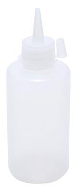 BOTTLE DISP LDPE 250ML CS10^ Round Dispensing Bottle made of LDPE with a Dropper Screw Closure and Captive Cap. Good chemical resistance to bases, acids and solvents. Max. temperature for LDPE is 80C.