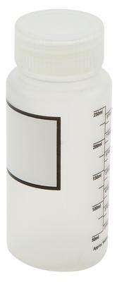 BOTTLE GRAD PP WM 250ML CS12^ Autoclavable, graduated wide-mouth PP Bottle with white marking area. PP screw closure. Graduations are nominal and in Metric and English. Ideal for sampling and storing chemicals, solvents or other liquids or powders.