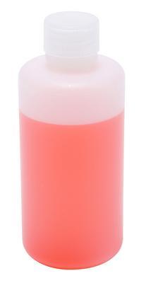 BOTTLE HDPE NM 250ML CS180^ Round Wide-Mouth HDPE Bottle with unattached PP screw closure. Leakproof, translucent and resin complies with FDA requirements for food use. Good for liquids or powders. Temp. range is -100 to 120C. Resistant to most common chemicals. 143x60mm (HxOD). Neck ID is 21mm.