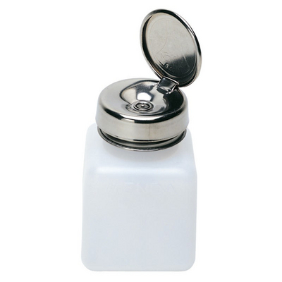 One-Touch HDPE Bottle^ 4oz. Bottle suitable for many solvents. Square-shaped. Provides stability and saves storage space. Wide opening, easy to fill, and translucent for easy viewing of contents.