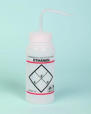 Here is the corrected product description: The Sodium Hypochlorite bottle is made of white LDPE for light protection between 230 and 450 nm. The variety pack includes one each of acetone (red closure), ethanol (natural closure), isopropanol (yellow closure), methanol (green closure), toluene (red closure), and water (blue closure). Easy-to-read, break-resistant dispensing bottles are made of low-density polyethylene and include DOT, CAS numbers, NFPA codes and symbols, protective equipment symbols, and target organ information. Polypropylene nozzle assemblies are leakproof and color-coded to match the bottle label. Caution: LDPE wash bottles are intended for short-term dispensing use only and not for storage of acetone, dichloromethane, toluene, and 1,1,1-trichloroethane. Capacity: 500 ml (16.9 oz.) Certifications: Provides compliance with OSHA requirements outlined in Hazard Communication Standard 29 CFR 1910.1200.