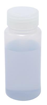 BOTTLE LDPE WM 250ML CS180^ Round Wide-Mouth LDPE Bottle with unattached PP screw closure. Leakproof, translucent and resin complies with FDA requirements for food use. Good for liquids or powders. Temp. range is -50 to 80C. Resistant to many common chemicals. 145x60mm (HxOD). Neck ID is 35mm.