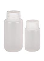 Here is the corrected text: Translucent, flexible bottles are designed for general laboratory use and are especially suitable for shipping liquids and trace metal analysis. They can be stored in a freezer to -100 °C (-148 °F). These bottles offer better visibility of contents than high-density polyethylene bottles, plus excellent chemical resistance to alcohols, alkalis, and both diluted and concentrated acids. Thick walls provide durability, yet the bottles are still squeezable. A shrink ring at the neck ensures a smooth interior, allowing contents to pour fluidly, while a sealing ring and semi-buttressed threads in the closure ensure leak prevention. Bottles are produced via the injection blow molding process for exact features and bottle stability. Ideal for shipping liquids and trace metal analysis | Impact-resistant | Leakproof | Easy-to-pour wide mouth design Polypropylene caps are included. Available capacities: 1 L (33.8 oz.), 500 ml (16.9 oz.), 250 ml (8.5 oz.), 125 ml (4.2 oz.), 60 ml (2 oz.), and 30 ml (1 oz.). Corresponding dimensions: * 1 L: 92 mm × 195 mm, cap size 63 mm * 500 ml: 73 mm × 164 mm, cap size 53 mm * 250 ml: 62 mm × 128 mm, cap size 43 mm * 125 ml: 51 mm × 95 mm, cap size 38 mm * 60 ml: 39 mm × 83 mm, cap size 28 mm * 30 ml: 35 mm × 60 mm, cap size 28 mm Catalog numbers: * 1 L: 414004-109 * 500 ml: 414004-108 * 250 ml: 414004-107 * 125 ml: 414004-106 * 60 ml: 414004-105 * 30 ml: 414004-104