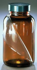 32oz Safety Coated Amber Boston Round^ With 33-400 green Thermoset* F217 PTFE lined cap attached. Vacuum and ionized.