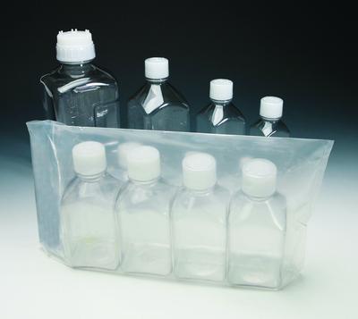 PETG Square Bottle^ 500ml PETG square bottle with HDPE closure. Sterile. Certified clean. 38-430 neck finish. Critical Consumption Packaging; 4 per sleeve, 6 sleeves per case (24 total).