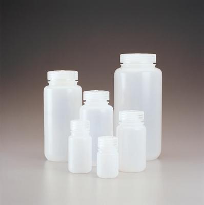 Nalgene Packaging Bottles, HDPE, With Screw Caps, Thermo Scientific^ Leak proof, tough plastic construction, injection blow molded for uniform wall thickness and strength, bulk packed for packaging applications, meets usp light transmission standards,