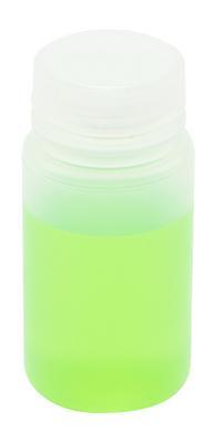 BOTTLE PP WM 60ML CS72^ Round Wide-Mouth PP Bottle w/PP screwclosure. Leakproof. Translucent. Autoclavable. Resin complies w/FDA requirements for use w/Food and Beverage. Good for liquids or powders. Temp.range is 0 to 135C. Resistant to most common chemicals. 82x40mm (HxOD). Neck ID is 26mm.