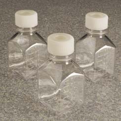 Nalgene Square Media Bottles with Septum Closure, PETG, Sterile, Thermo Scientific^ Leakproof, transparent media bottles, square design saves valuable shelf space, bottles and closures are sterile to 10 sterility assurance level.