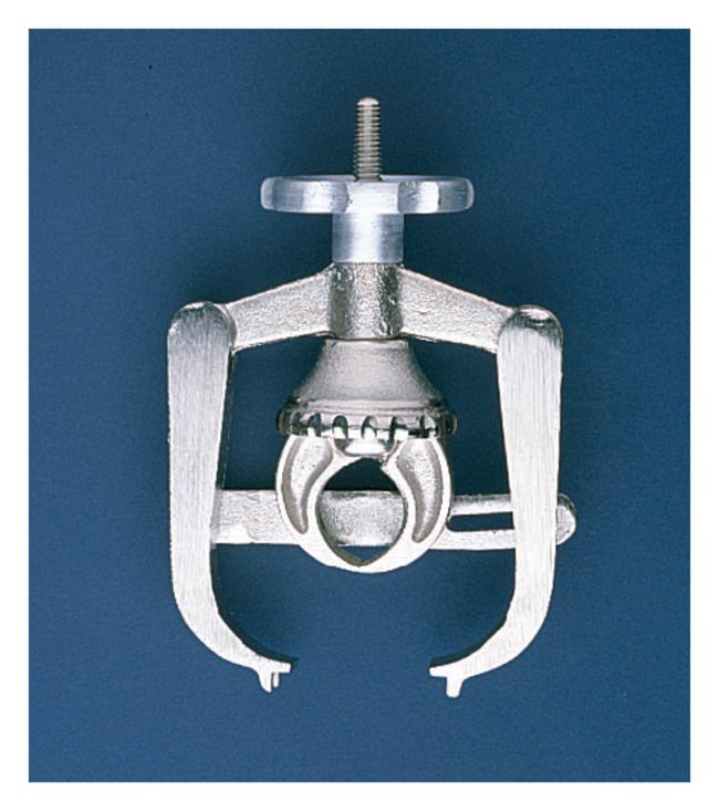 Remove “frozen” ground-glass stoppers from bottles. Stopper remover rests on bottle mouth. Inner jaws grasp stopper firmly. Stopper is extracted by carefully turning knob. Apparatus is adjustable to fit various bottle sizes.