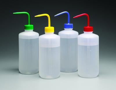 Color-Coded Wash Bottle, Blue, LDPE, non sterile^ Lets you color code reagents or coordinate with storage codes on NALGENE Right-To-Know labels (Cat. No. 6317). Closure and stem molded in one piece for leakproof service. Tip can be cut back to increase flow.