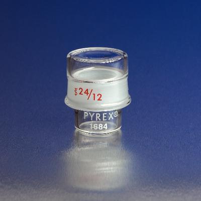 PARR Weighing Bottle^ Pyrex* brand, PARR weighing bottle with short length external ts joints. Approx. wt. 12gm., approx. capacity 4ml. ts Joint 24/12. 20mm O.D. x 24mm length.Designed for use in weighing small samples. The closure style cap fits over the externally ground body.
