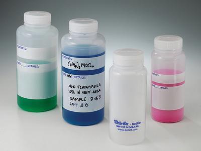 Bottle are molded of rugged hdpe in 1000ml (32oz) size with wide mouth and leak proof polypropylene cap^ large dedicated labeling areas help standardize the way Bottle contents are identified. additional writing area for name and safety information with space for date information.