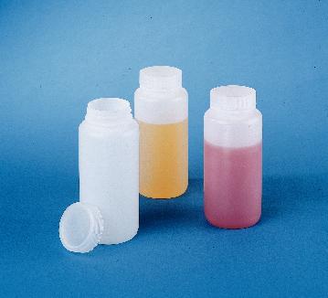 Leak-Resistant Bottle, High-Density Polyethylene, Wide Mouth^ 250mL. Durable bottle is ideal for general laboratory use and field sample analysis. Designed with a special pour lip to facilitate safe, clean dispensing. Polypropylene cap attached. Cap size: 43-410. Dia.xH: 61x125mm.