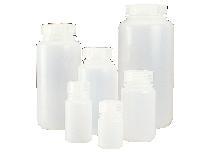 NALGENE* Laboratory Bottles, Low-Density Polyethylene, Wide Mouth^ 250mL, translucent, flexible bottles are impact resistant and suitable for shipping liquids. Bottles offer better visibility of contents than HDPE bottles. 43mm cap included. Leakproof.