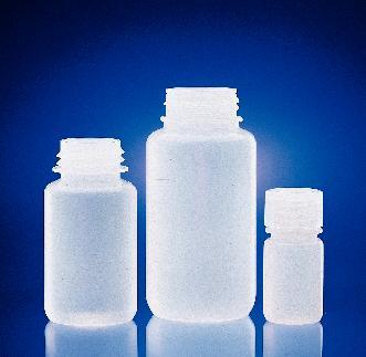 Leak-Resistant Bottle, Low-Density Polyethylene, Wide Mouth^ 30mL. Lightweight bottle is ideal for general laboratory use. Wide mouth facilitates filling and pouring. Designed with a special pour lip to facilitate safe, clean dispensing. Polypropylene cap attached. Cap size: 28-410. Dia.xH: 33x69mm.