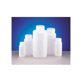 Specifications High density polyethylene, DOT-2E TypeGood chemical resistanceEasy to fill and dispenseFDA and DOT approvedBottles have wide mouth for ease of filling with dry or liquid materials. Molded pour lip for easy, no-spill pouring. Sturdy, translucent heavy-duty walls are manufactured to strict DOT-2E specifications. Unique, leak-proof, polypropylene closure eliminates closure back-off during shipment. Made with FDA-approved resin for use with food products and ultra-pure chemicals.Thomas No.Capacity (mL )Cap Size (mm)1717J8030281717J8560331717J90125381717J95250451717K00500551717K051,000651717K082,00065