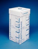 Disposal boxes are shipped flat and fold into shape easily. The entire box can be discarded when filled, ensuring safe handling and ready identification of contents. This disposal box features a clearly labeled, rigid cardboard carton with a polypropylene liner to contain spills. It is dedicated to separating plastics from the waste stream and is sized to fit under many benchtops. The approximate volume is 63 liters (16.6 gallons), with dimensions of 30.5L × 30.5W × 68.6H cm (12 × 12 × 27"). The catalog number is 58949-700.