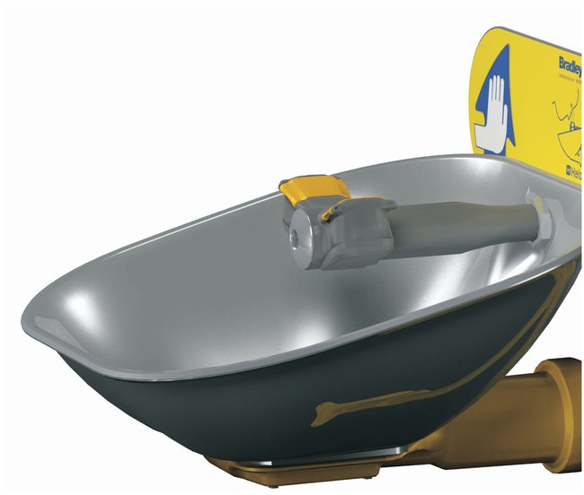 The Halo eyewash unit offers a high performance rinsing platform that provides rapid relief to eyes that have been injured by chemicals or particulate.Provides 4.8gpm of water at safe velocityOperated by ergonomic push handle and hand activation eyewash paddleBarrier-free design with 0.5 in. (1.27cm) stay-open eyewash ball valveAntimicrobial protection availableFeatures Self-draining Aquaduct™ designFully-assembled and Factory-testedUniversal identification sign and inspection tag includedGalvanized steel supply and waste pipes protected with BRADTECT™ safety yellow coatingBowl constructed of yellow impact-resistant plastic or stainless-steel materialWaste drain fitting, 1.25 in. (3.17cm) and tailpiece furnishedCheck valves for backflow prevention with 0.37 in. (0.9cm) female dual NPT female inlet and outlet connectionsIntegral flow control in sprayhead assembly assures safe, steady water flow under varying water supply conditions from 30 to 90psiCertificationsUL listedComplianceANSI Standard Z358.1 compliant