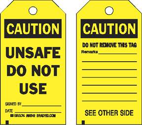 Feature two chamfered corners and a 3/8 in. grommeted holeTextured write-on surface allows for authorized signatures, dates, and other special instructionsChemical-resistant, plastic Dura-Tags are reusable and designed for harsh plant environments; come with nylon fastenersChemical-resistant economy polyester tags withstand moisture, grease and dirt; come with nylon fastenersEconomical, yet durable cardstock tags come with string fastenersComplianceMeet OSHA 1910.145 for accident prevention; Dura-Tag and polyester tags also meet OSHA 50 lb. pull requirement.