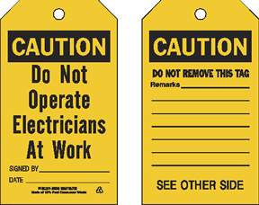 Feature two chamfered corners and a 3/8 in. grommeted holeTextured write-on surface allows for authorized signatures, dates, and other special instructionsChemical-resistant, plastic Dura-Tags are reusable and designed for harsh plant environments; come with nylon fastenersChemical-resistant economy polyester tags withstand moisture, grease and dirt; come with nylon fastenersEconomical, yet durable cardstock tags come with string fastenersComplianceMeet OSHA 1910.145 for accident prevention; Dura-Tag and polyester tags also meet OSHA 50 lb. pull requirement.