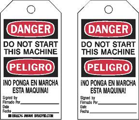 Feature two chamfered corners and a 3/8 in. grommeted holeTextured write-on surface allows for authorized signatures, dates, and other special instructionsChemical-resistant, plastic Dura-Tags are reusable and designed for harsh plant environments; come with nylon fastenersChemical-resistant economy polyester tags withstand moisture, grease and dirt; come with nylon fastenersEconomical, yet durable cardstock tags come with string fastenersComplianceMeet OSHA 1910.145 for accident prevention; Dura-Tag and polyester tags also meet OSHA 50 lb. pull requirement.