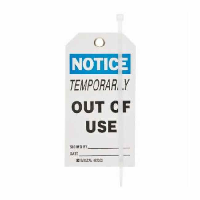 Feature two chamfered corners and a 3/8 in. grommeted holeTextured write-on surface allows for authorized signatures, dates, and other special instructionsChemical-resistant, plastic Dura-Tags are reusable and designed for harsh plant environments; come with nylon fastenersChemical-resistant economy polyester tags withstand moisture, grease and dirt; come with nylon fastenersEconomical, yet durable cardstock tags come with string fastenersComplianceMeet OSHA 1910.145 for accident prevention; Dura-Tag and polyester tags also meet OSHA 50 lb. pull requirement.