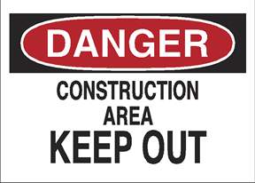 Admittance Signs: DANGER - CONSTRUCTION AREA KEEP OUT, To guide employees and visitors in an emergency and identify areas designated for certain personnel, Each