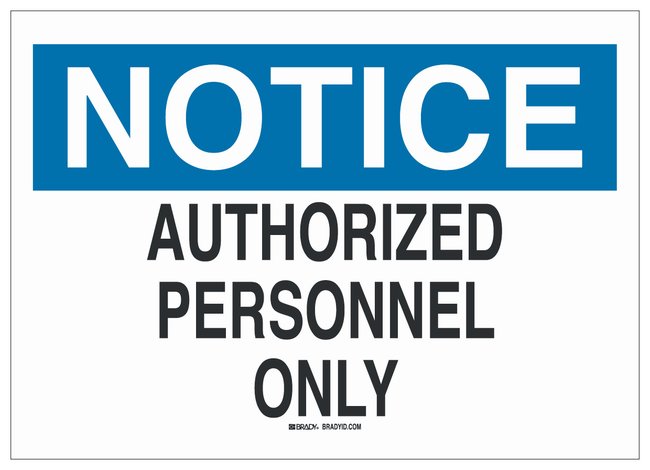 Admittance Signs “Notice Authorized Personnel Only”, Various sizes and materials, Each