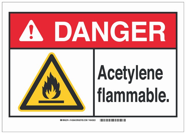 Aluminum ANSI Danger Sign: ACETYLENE. FLAMMABLE, Each