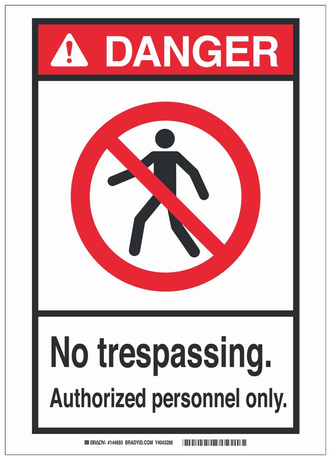 Aluminum ANSI Danger Sign: NO TRESPASSING. AUTHORIZED PERSONNEL ONLY, Each