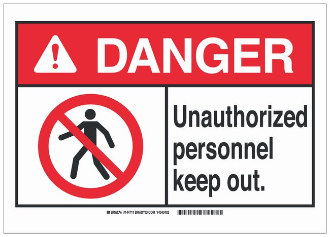 Aluminum ANSI Danger Sign: UNAUTHORIZED PERSONNEL KEEP OUT, Each