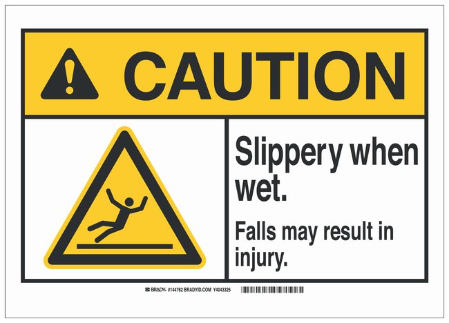 Aluminum ANSI Sign: SLIPPERY WHEN WET. FALLS MAY RESULT IN INJURY, Each