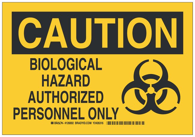 Aluminum Caution Sign: BIOLOGICAL HAZARD AUTHORIZED PERSONNEL ONLY, Each